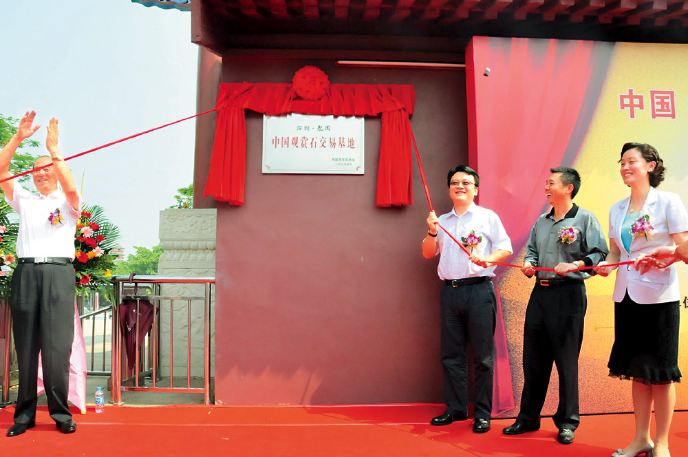 圖:深圳市龍崗區區長張備(左二)為中國觀賞石交易基地揭牌