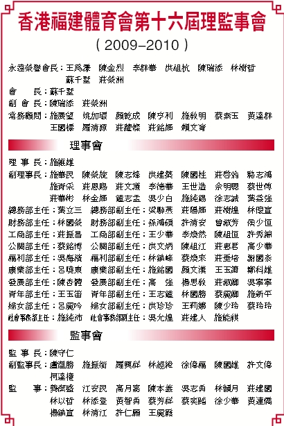 香港福建體育會第十六屆理監事會