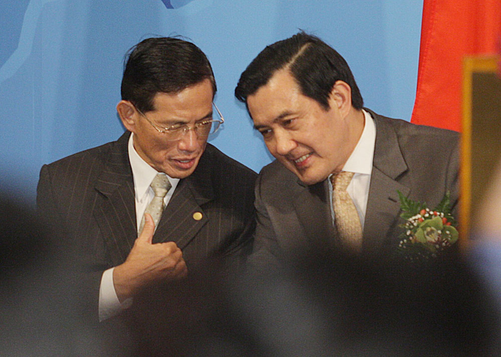 圖:馬英九(右)二十六日晚間即將率團外訪,圖為他二十五日出席二○○九年「非洲日」慶祝活動,與「外交部長」歐鴻鍊(左)交換意見 (中央社)