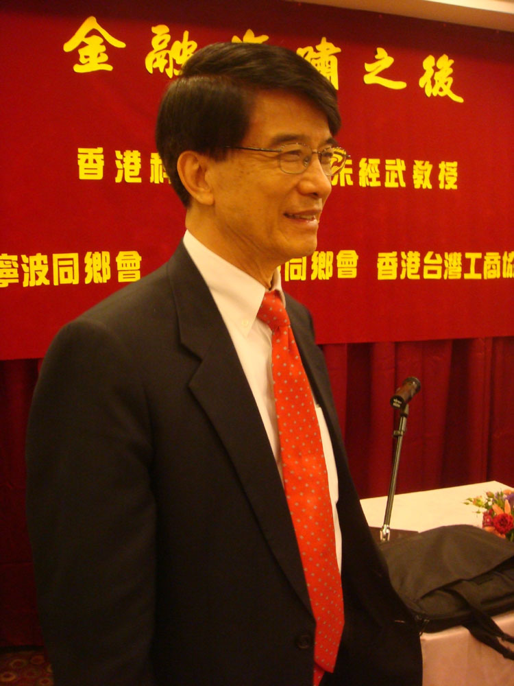 香港科技大學校長朱經武今年八月正式榮休。寧波旅港同鄉會、香港台灣工商協會及港澳台同鄉會昨日特別為他舉行「餞別晚會」,並邀他席前演講。朱校長開玩笑說,「從○六年開始科大世界排名一路飆升,但卻不知道這樣排序的道理。」他透露,退休要完成的三個夢想:研發溫室超導材料;成立基金會發展新型材料;開發磁共振技術。大公報社長姜在忠應邀出席晚會。 (本報攝)