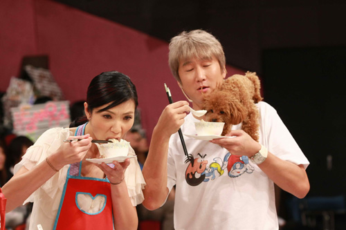 圖:車婉婉和洪天明試食,連洪的愛犬也爭住吃