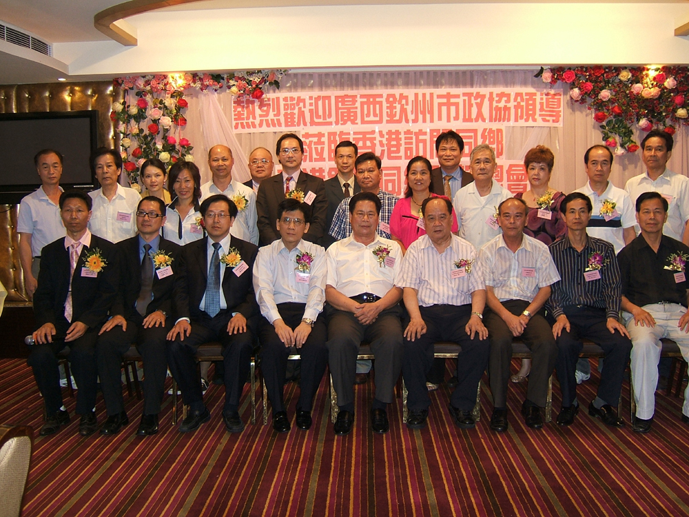 圖:香港欽廉同鄉聯誼總會榮譽會長張桂祥(前排右四)、會長香灼瑋(前排右三)、常務副會長黃畯武(前排左一)與來自廣西欽州政協副主席湯年通(前排中)和嘉賓合照