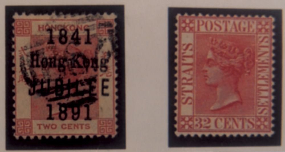 像附圖兩款較罕有而且保存完美的維多利亞肖像郵票即為典例。左方為加蓋「一八四一香港金禧一八九一」英文字樣的「貳先時」郵票;右方為海峽殖民地(新加坡及馬來西亞一帶)三十二仙普通郵票(未蓋銷),均為一些集郵者蒐求的對象。