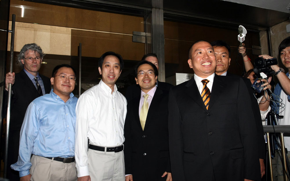 【本報訊】陳振聰昨日「晒馬」帶同三名胞弟到法庭聽訊,澄清Charles Chan並非同父異母兄弟的傳聞。據稱,陳振聰年屆八十歲高齡的母親更因此事「激到彈起」,而血壓飆升,身為長兄的陳振聰希望以行動令母親釋懷,他形容有關傳聞是無稽之談。而陳家兄弟四人相貌甚為相似,其中以任職宏霸數碼執董的陳振田與長兄最為相似。而陳家的妹妹陳婉燕則由於工作關係,沒有到法庭聽審。
