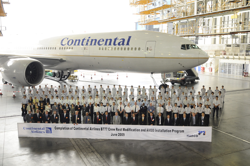 圖:美國大陸航空與HAECO雙方代表在赤鱲角機場飛機庫中留影