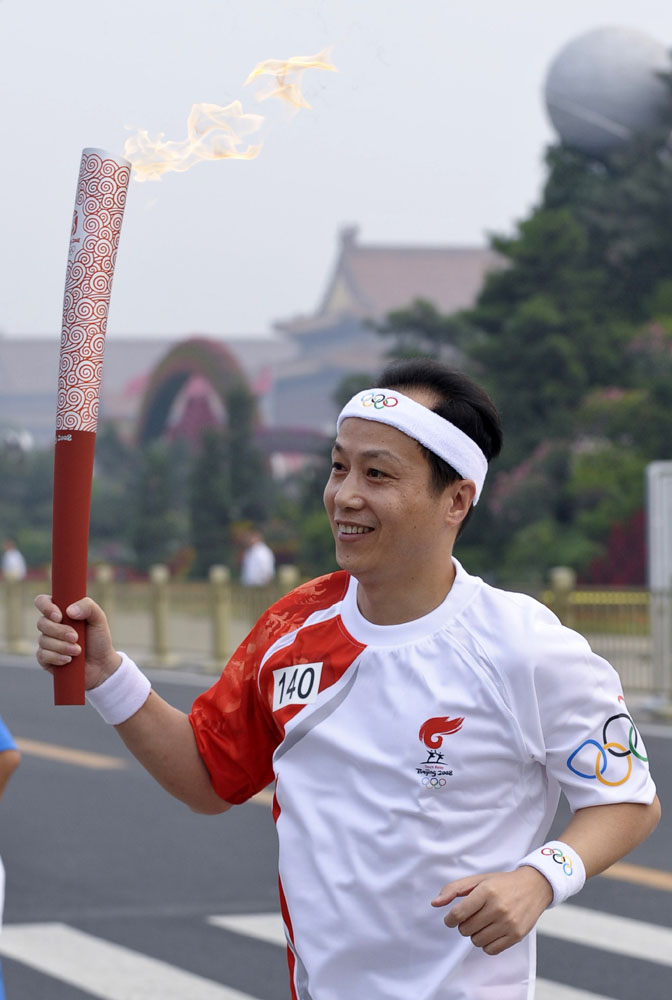 圖:去年8月,羅京作為京奧火炬手在北京傳遞奧運聖火(新華社)