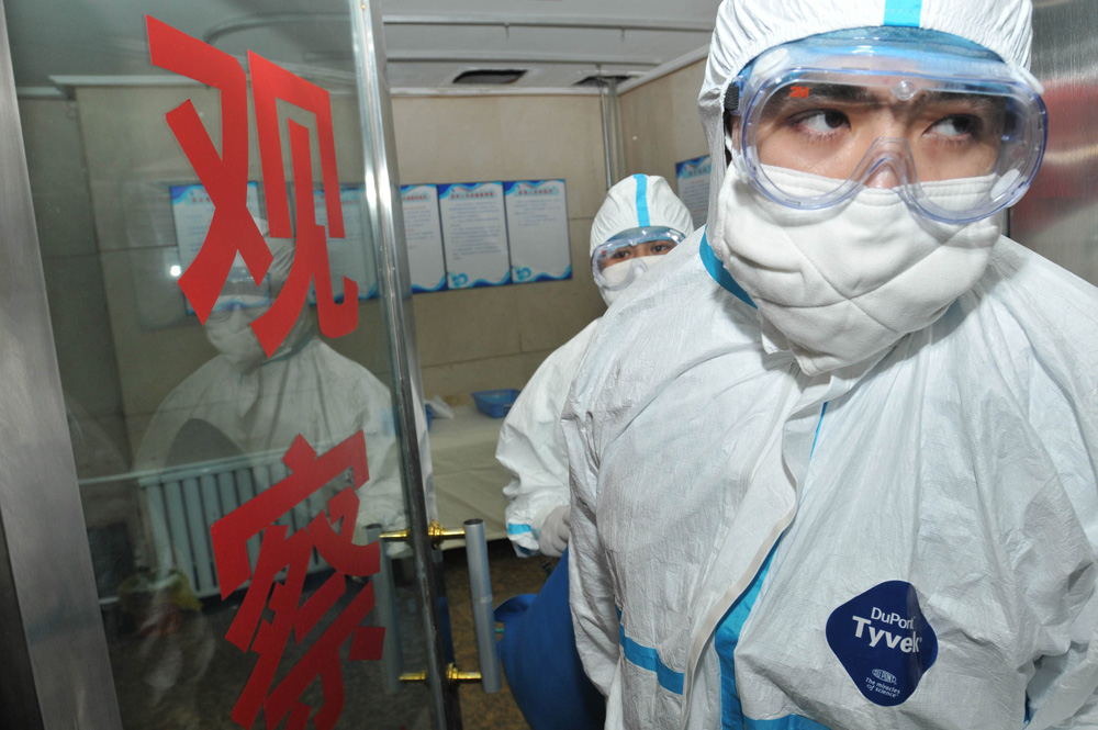 圖:新疆巴州在庫爾勒組織開展甲型H1N1流感防控演練(中新社)