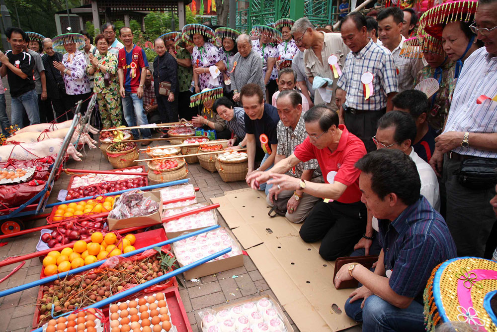 圖:善信在大王爺誕中問杯,祈求神靈滿意供品
