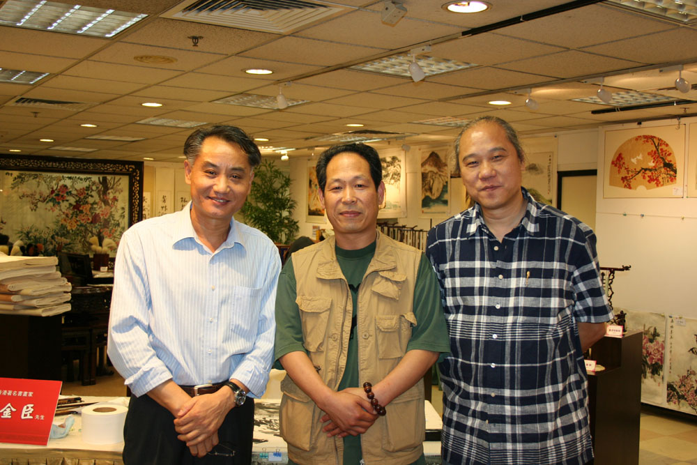 圖:中國書法家協會會員傅小泉(中)到訪裕華,與香港畫家杜金臣(左)、曾鍾貴(右)合影