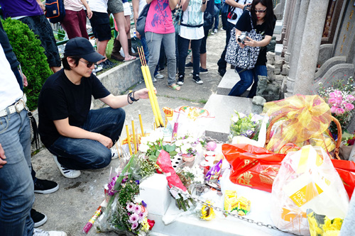 圖:世榮到家駒的墓拜祭,與眾歌迷一同懷念