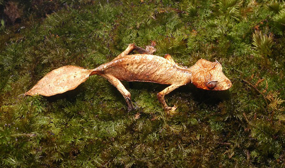 圖:生活於非洲馬達加斯加的葉尾壁虎,因為尾巴似一片葉子而得名
