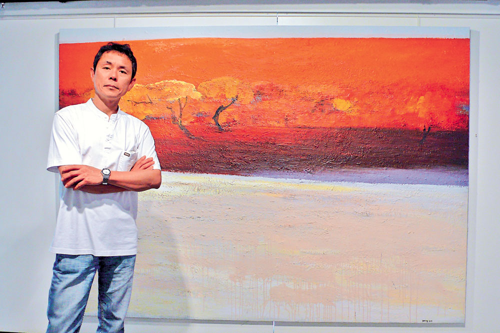 圖:楊登雄畫作傳達着無盡空曠的壯麗色彩(本報攝)
