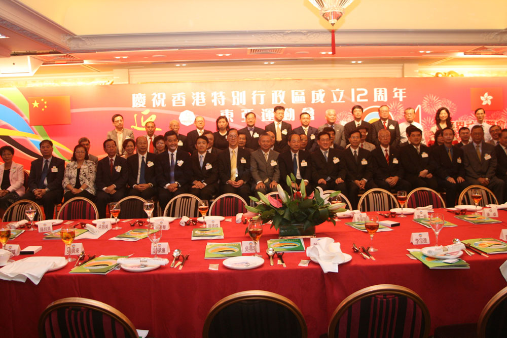 □新界社團聯會為慶祝香港特別行政區成立十二周年、迎東亞運動會暨該會成立二十四周年會慶聯歡晚會,於本月十二日晚在太和美心皇宮酒樓舉行,五百名各界友好及會友同歡共聚。會長張學明致詞強調聯會將堅守自主創新的持續發展動力,並全力配合特區政府在新界各區協助推廣「2009東亞運動會」,發動市民多多參與,一同辦好這場體育盛事。\本報記者 岑敏兒