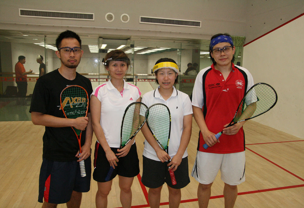 圖:本地壁球「1姐」趙詠賢(左二)將與顏倫璋(右)合作混雙,歐詠芝(右二)則將夥拍王偉恒(左)(本報攝)