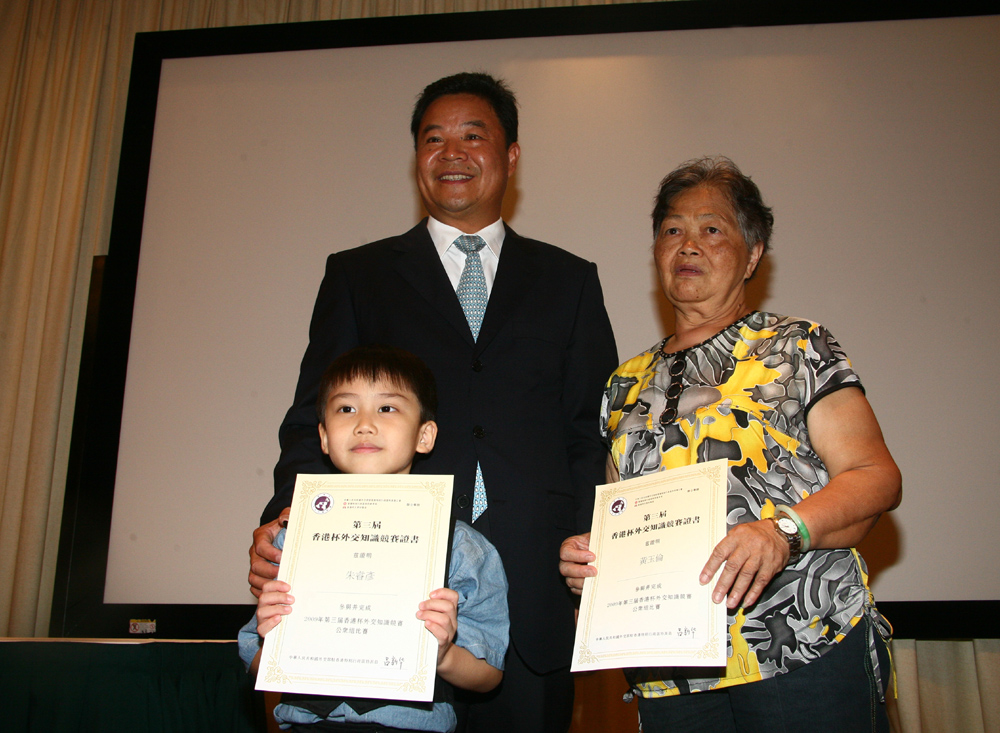 外交部駐港特派員公署發言人宋榮華為優勝者頒獎,獎品是前外交部長錢其琛撰寫的《外交十記》、二十二集紀實系列片《外交官紀實》一套和兩張迪士尼門票。宋榮華表示,《外交十記》記錄了錢其琛親歷的十件外交大事,和一些鮮為人知的故事,紀實片則講述中國外交官的生活。