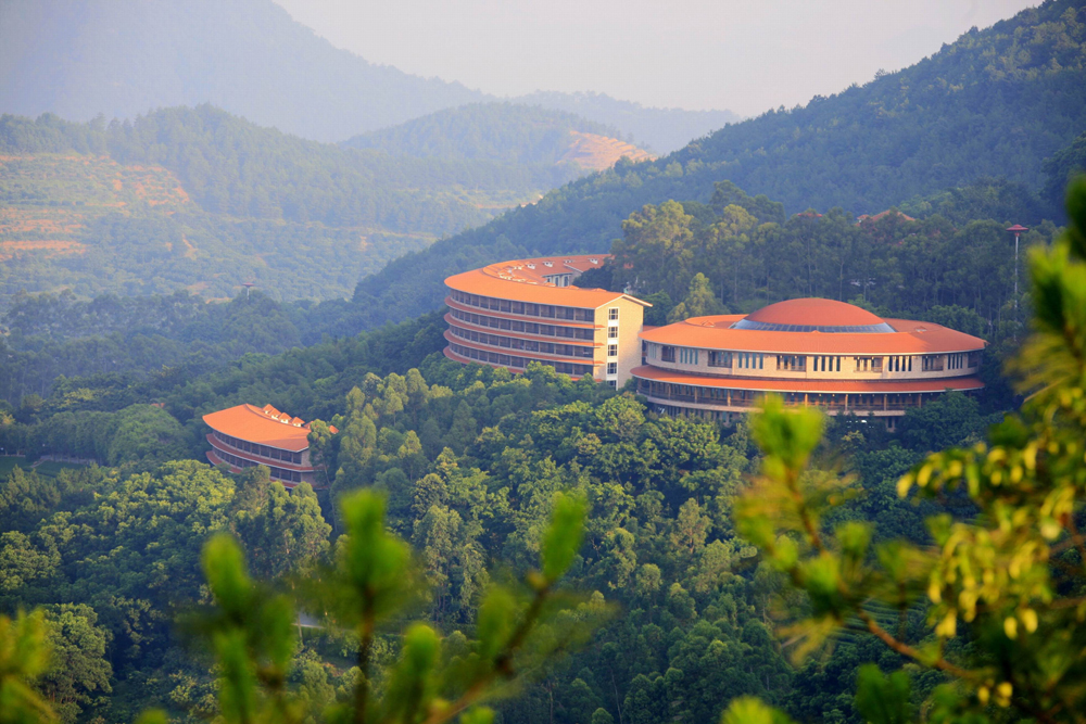 酒店的長廊連接傳統土圍樓結構的圍龍食府,匠心獨運。食府大廳以大紅為主色調,夜幕降臨,迴廊上亮起了紅燈籠,頗有宮廷氛圍。「茶田鹽焗雞」、「山溪香螺」、「梅菜扣肉」等多款客家名菜是遊客必點之物,還有用八種藥材燉製而成的土窰煨湯,據說是梅州客家的「秘傳之湯」,讓人「食過番尋味」。