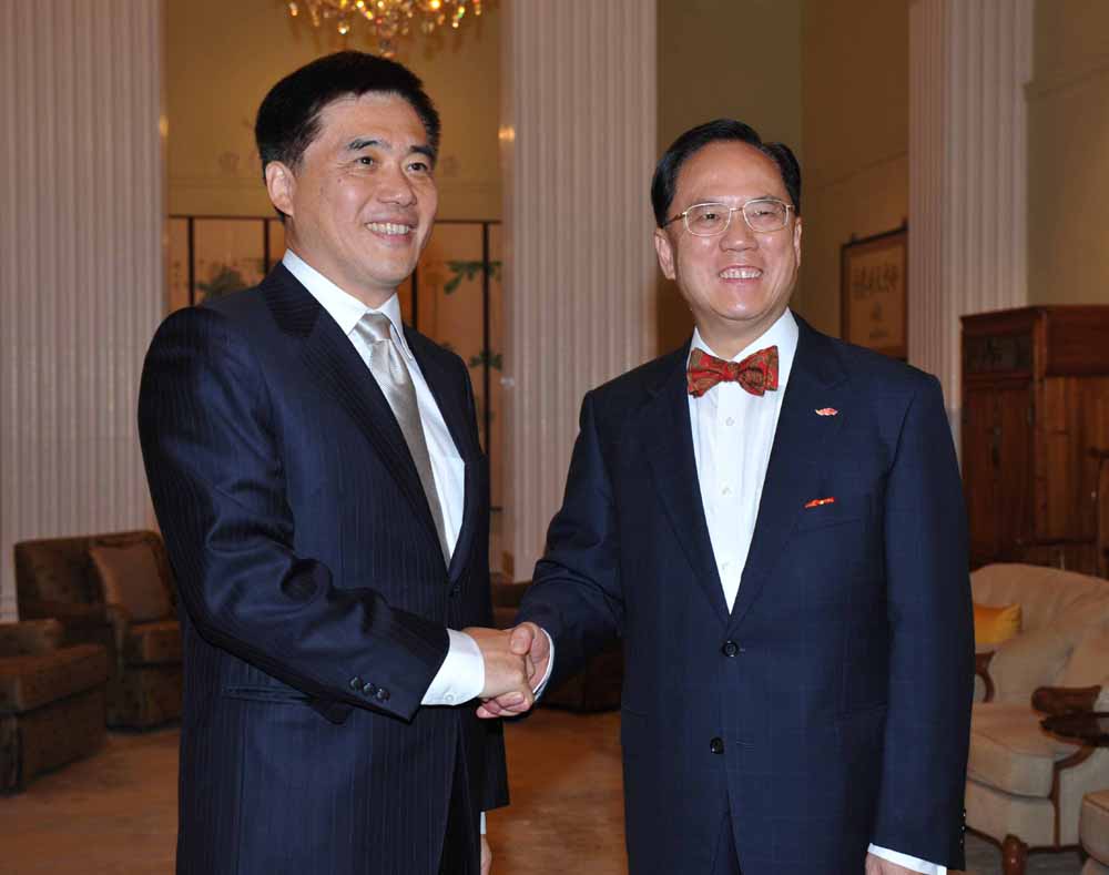 圖:曾蔭權(右)在禮賓府會見郝龍斌(左),雙方就兩地最新發展交換意見(政府新聞處圖片)