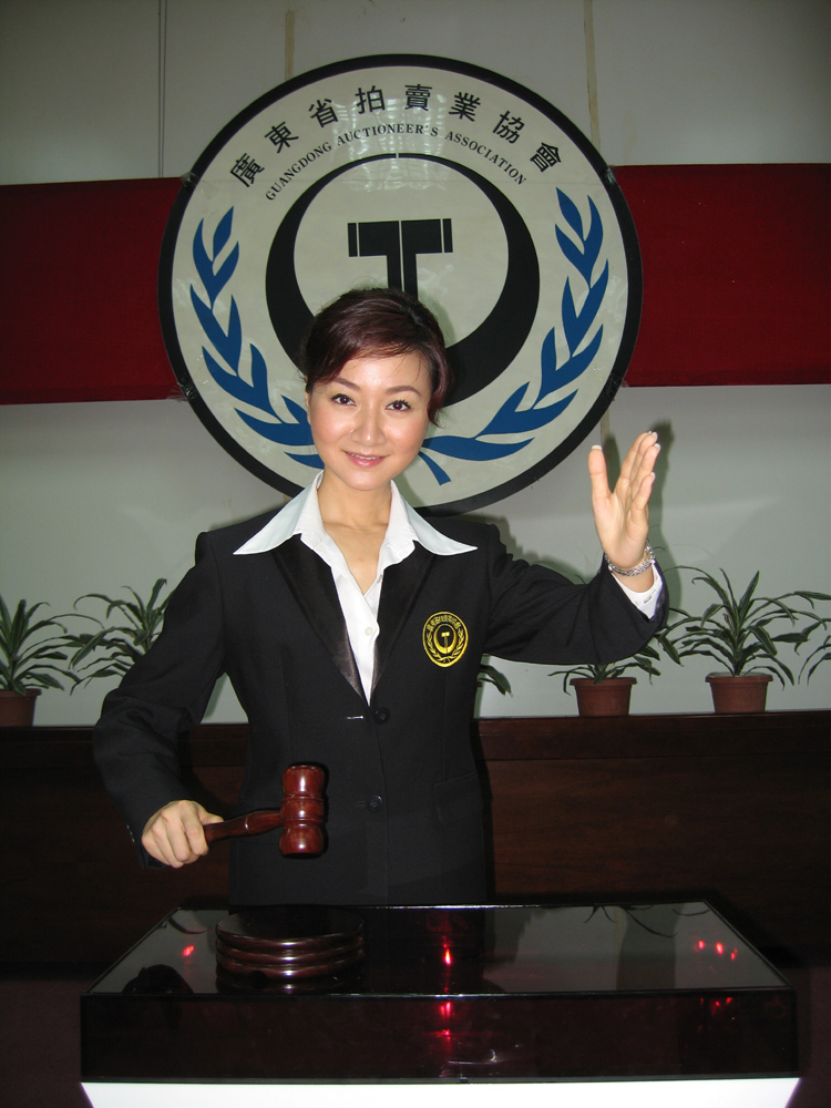 圖:金鈴在廣東省拍賣業協會舉槌(受訪者提供)
