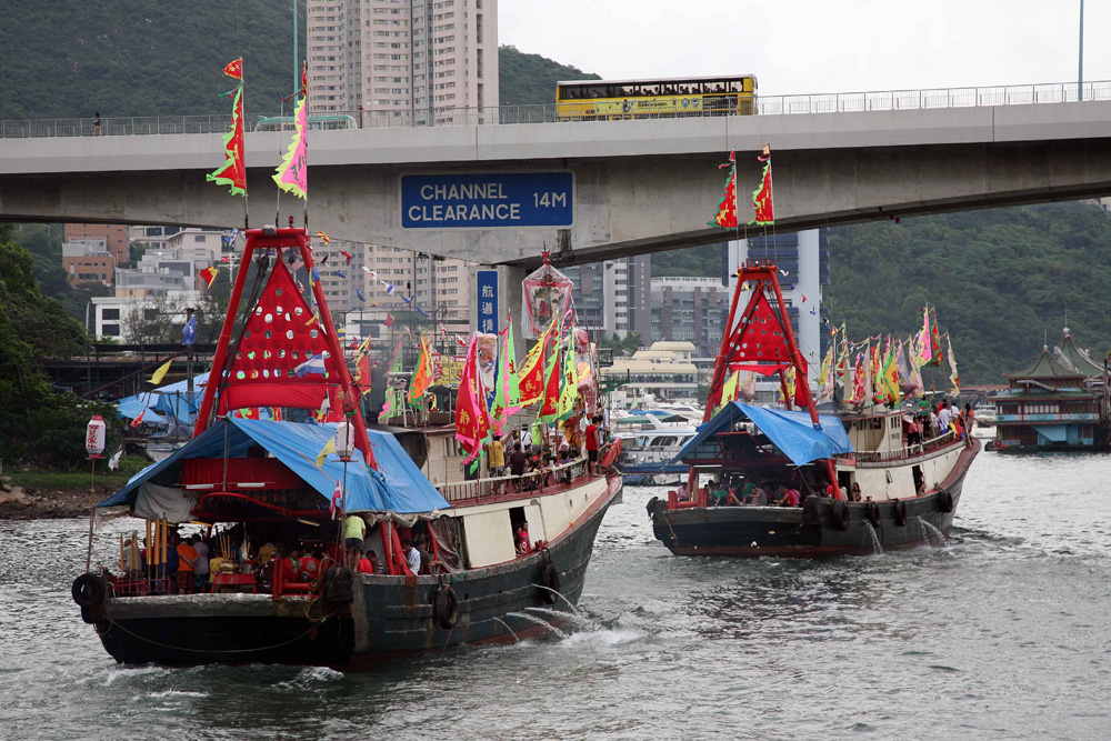 圖:漁船在三角媽打醮期間環繞鴨脷洲一圈祭幽
