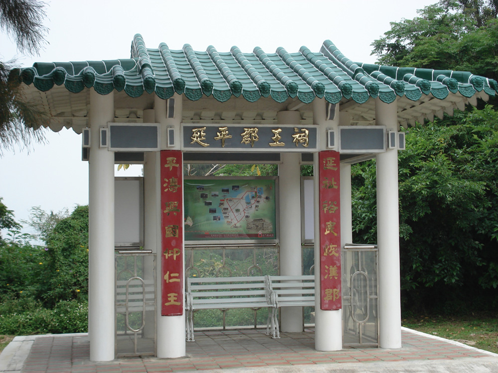 乘公車往水頭碼頭離境,途經延平郡王祠,下車遊覽。台灣台南市也有延平郡王祠,金門此祠貌雖古,但並非古蹟,建於1969年。入口牌坊正面書「忠肝義膽」,背面書「浩然正氣」。祠堂內奉祀明延平郡王鄭成功,上有蔣介石繼任人嚴家淦題寫的「天地正氣」牌匾,還有孫中山先生長子孫科題寫的「忠昭日月」。左右兩邊牆上有栩栩如生的鄭成功故事壁畫。祠外陳列兩尊鄭成功軍隊使用過的古炮。