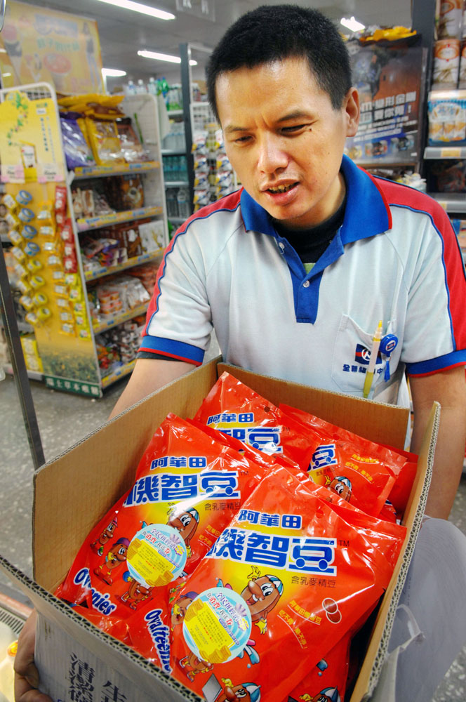 圖:台北一處超市二日將「阿華田機智豆」回收下架(中央社)