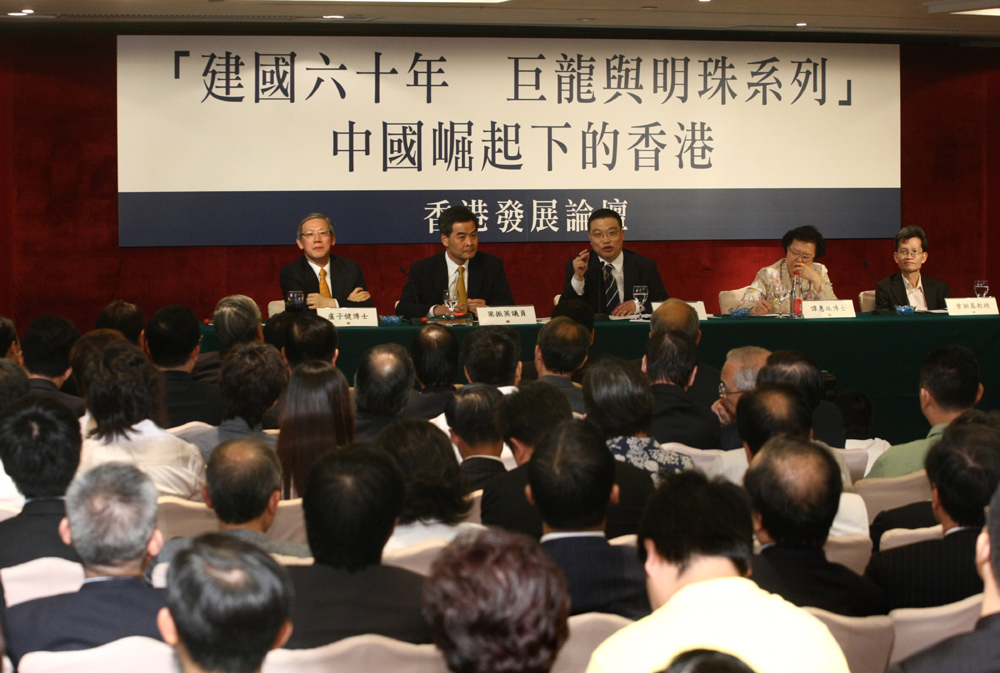 此外,論壇上各位講者也就香港在中國崛起背景下的發展各抒己見。行會召集人梁振英表示,香港與國家是「全方位」的關係,內地不斷發展,相信未來十至二十年變化會相當大,若香港要適應內地的轉變,就要「調整、再調整」。他說,香港某些產業被邊緣化是因沒有改變。隨着周邊環境改變,如果香港拒絕或不能去適應,以及無法正確加以調整,就會被邊緣化。梁振英指出,「香港好、國家好,國家好、香港更好」充分地點出香港與國家的關係本質。