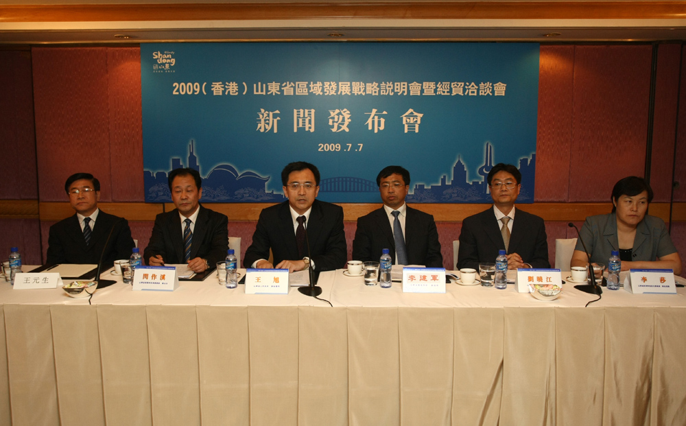 【本報記者羅縈韻報道】為進一步推動魯港經貿合作關係,山東省政府將於本月十七日在香港舉辦「2009(香港)山東省區域發展戰略說明會暨經貿洽談會」。在昨日的新聞發布會上,山東省副秘書長王旭介紹了此次活動的有關詳情,以及山東當前的經濟社會發展情況。據悉,七月中旬,山東省委書記姜異康將率山東代表團訪港,期間並推出300個招商項目,涉及高新技產業、先進製造業、節能環保產業、基礎設施及現代服務業等領域。