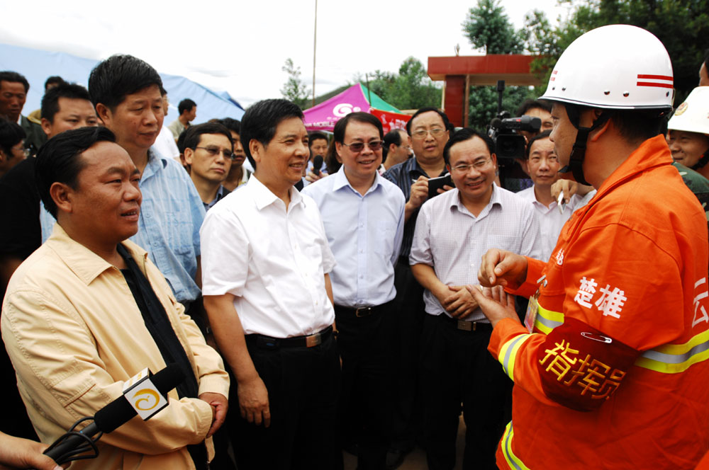 圖:雲南省省長秦光榮(左三)親赴災區指導救災(本報攝)