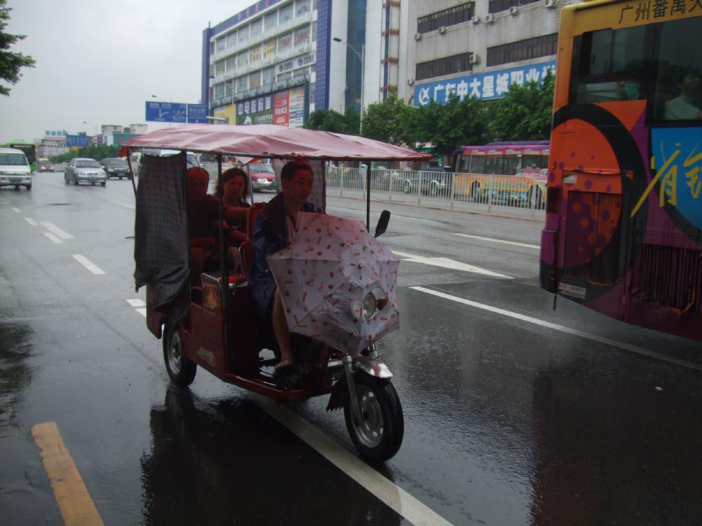 【本報記者呂劍廣州十日電】由於廣州市近日雨天增多,加上出租車高峰時段交通工具的嚴重不足,給電動三輪車很大的生存空間,近期廣州出現大量的非法三輪出租車,在廣州街頭公開拉客營運,由於該三輪車無牌無證,到處逆行亂竄,也因此埋下了交通隱患。