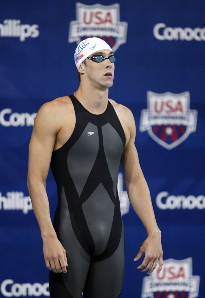圖:菲比斯穿上「鯊魚皮」泳衣,如虎添翼