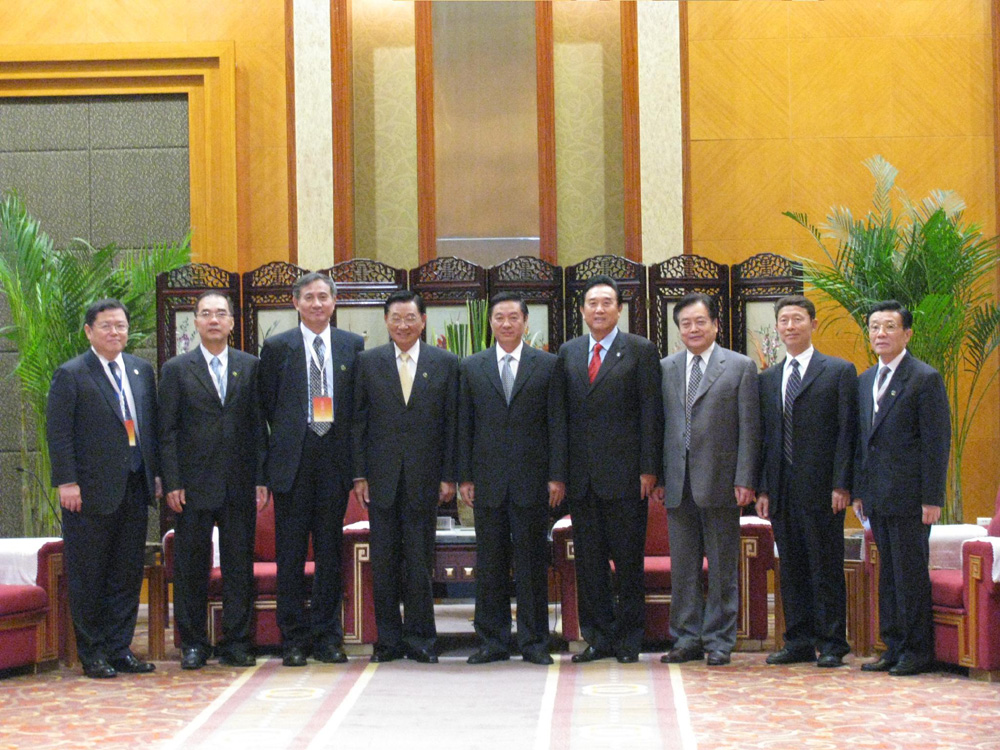 圖:四川省委書記劉奇葆(左五)、省長蔣巨峰(左七)與海基會董事長江丙坤(左四)、海協會會長陳雲林(左六)、陸委會首席副主委劉德勳(左三)等合影(本報攝)
