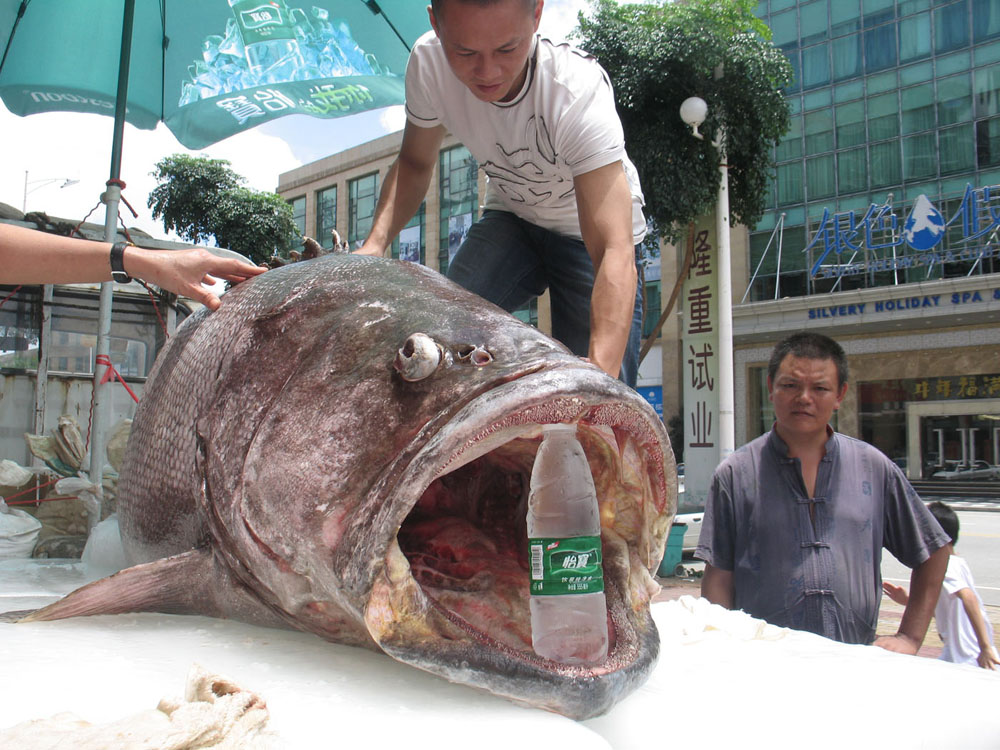 記者在網上搜索發現,去年有漁民在廣東湛江澎湖灣抓到一條石斑魚,長有2.35米,但重為313公斤,比這條小了1公斤。當時捐給了上海科技館,經館專家鑒定,確定為我國迄今為止發現的最大石斑魚個體。