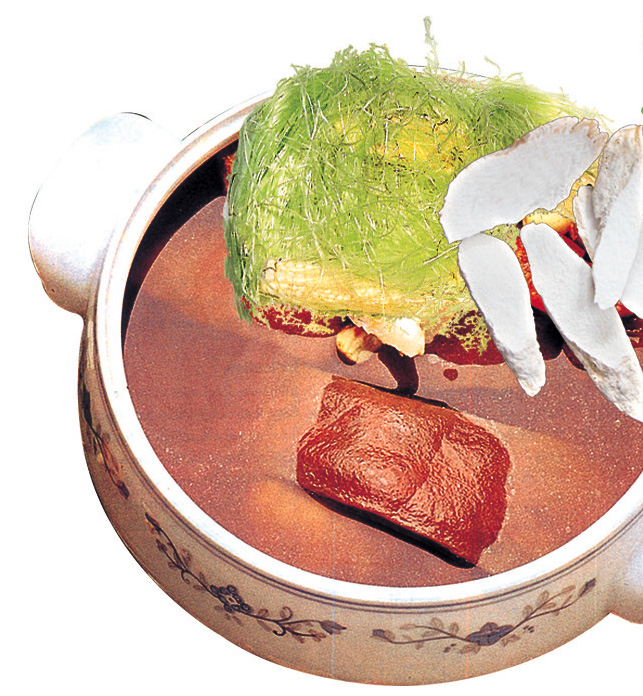 製法:豬胰洗淨,橫切若干件,與粟米鬚(即玉米鬚)、山藥同放入上蓋有孔之陶器湯煲裡,注入清水約2kl,用普通火候煮成湯液約600ml,略加食鹽調味,取湯候用。