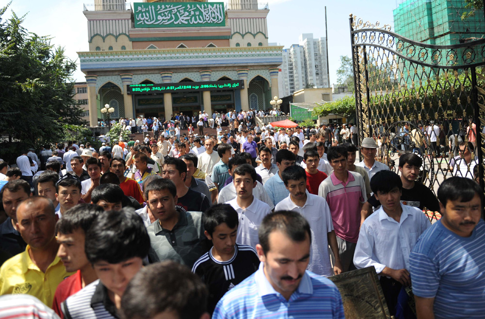 圖:穆斯林群眾二十四日在新疆烏魯木齊洋行清真寺做完「主麻拜」後離開。當日是主麻日,烏魯木齊穆斯林群眾在各清真寺舉行聚禮(新華社)