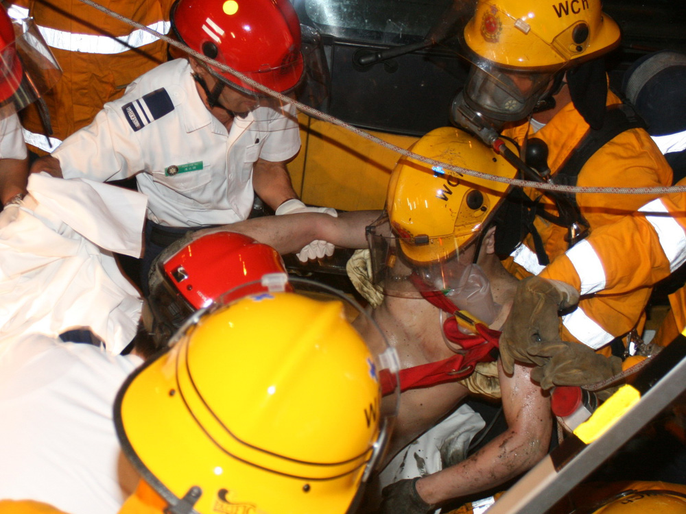 因跣腳跌落沙井撞傷頭命危男子林×達(三十三歲);捨身救人工友吳×龍(三十二歲),獲救時仍然清醒,惟因吸入沼氣「灼傷」肺部,需留院接受治療,情況穩定。