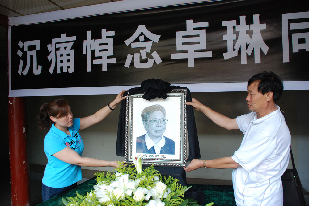 據前來悼念的親友描述,卓琳的靈堂非常肅穆、低調。遺像是改革開放後卓琳在美國參加一次國際會議時的演講照片。