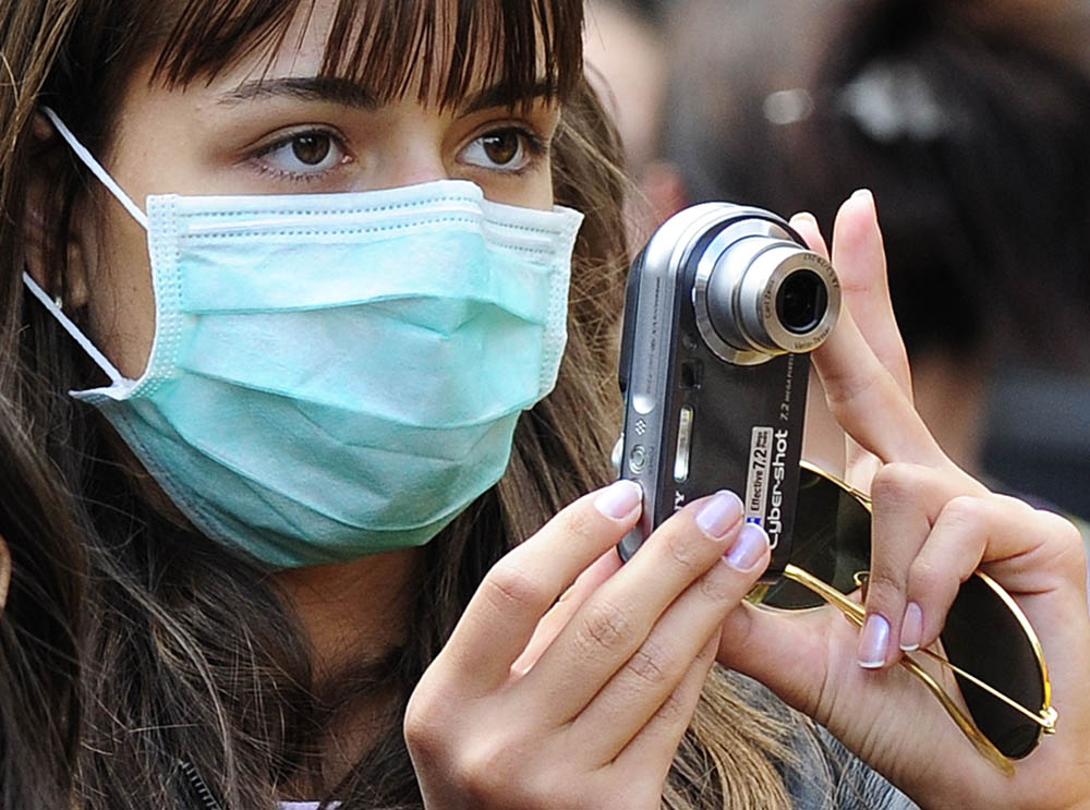 圖:一個女孩戴着口罩在倫敦拍照 (資料圖片)