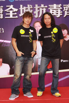 圖:Joey(右)為抗毒活動編寫及主唱主題曲,旁為小方
