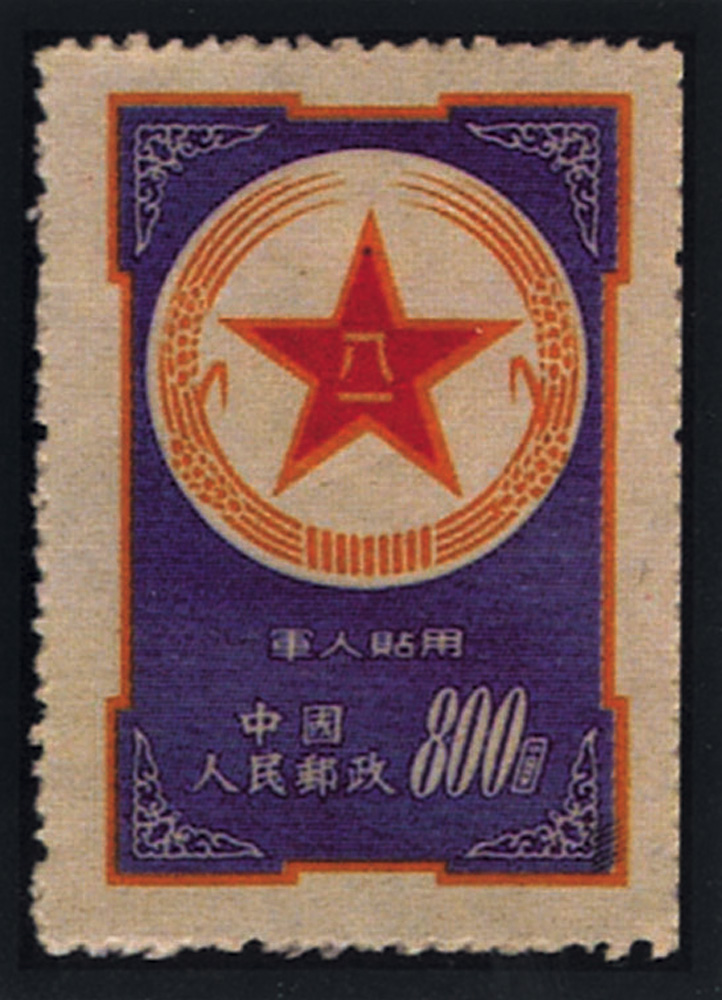 1953年2月為了優待軍人寄信,郵電部發行一套「軍人貼用」郵票,郵票共3枚,面值均為舊人民幣800元,圖案為中國人民解放軍「八·一」軍徽,軍徽下面印有「軍人貼用」、「中國人民郵政」、「800圓」字樣。第一枚底紋為橘紅色,俗稱「黃軍郵」;第二枚紫色,俗稱「紫軍郵」;第三枚藍色,俗稱「藍軍郵」。圖幅為21毫米×32毫米,齒孔14度,全張90(9×10)枚。膠版,由北京人民印刷廠營業分廠印製。擬於1953年8月1日發行。這套郵票於1953年7月初開始印製,是新中國第一套軍用郵票。郵票分批印完,陸續下發到各部隊和軍事機關,每位官兵每月可得到2枚用於通信。郵票下發後,有的部隊反映,在沒有信箱代號的情況下使用「軍人貼用」郵票容易泄密,郵票使用範圍和對象也難以控制等等,為此,有關部門決定「延期實行」,停止使用。後來,軍隊有關領導機關作出決定,沒有下發的郵票全部銷毀。但在個人手中的「軍人貼用」郵票仍被使用。這三種郵票都流出一些,其中藍色「軍人貼用」郵票印成較晚,留存下來的數量最少,成為罕品,極為珍貴。