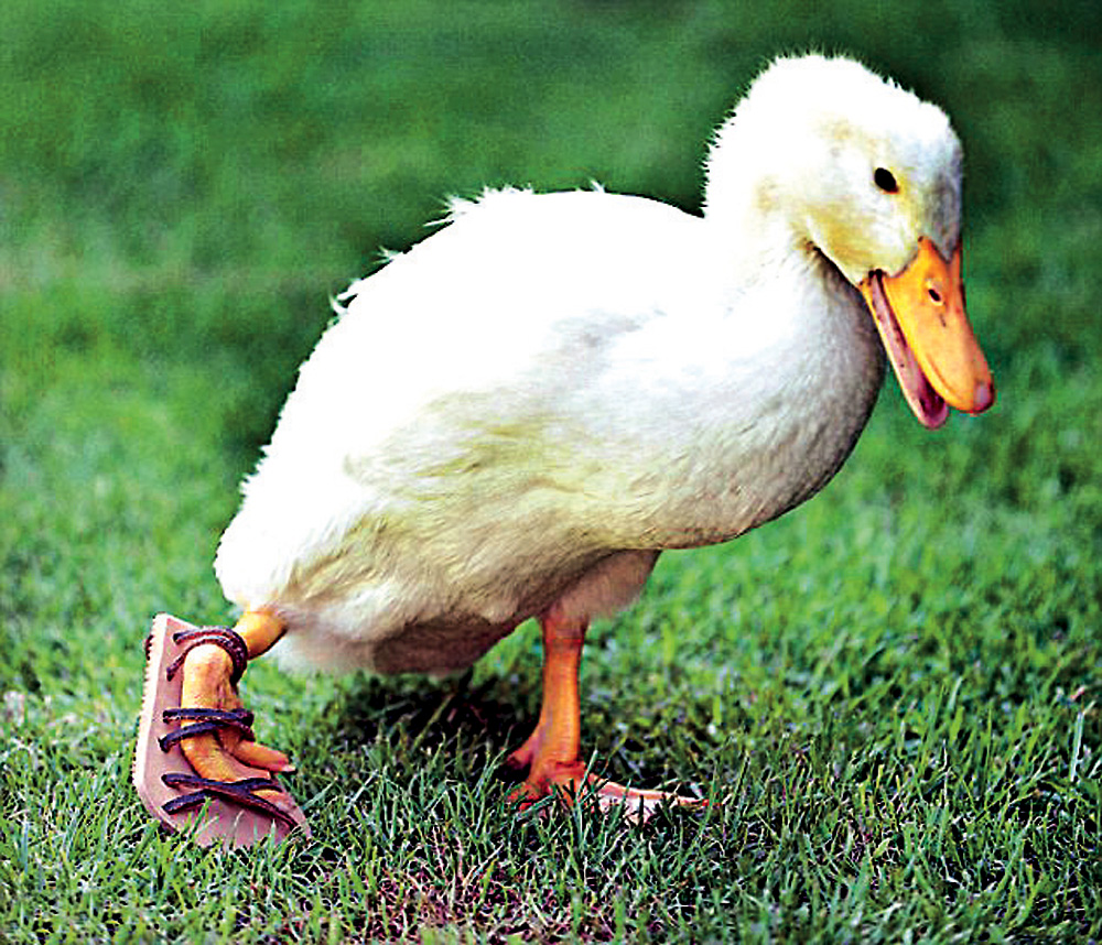 英國一隻小鴨原本因腳骨折斷而面臨人道毀滅,幸好一隻特製的拖鞋令牠重獲新生。