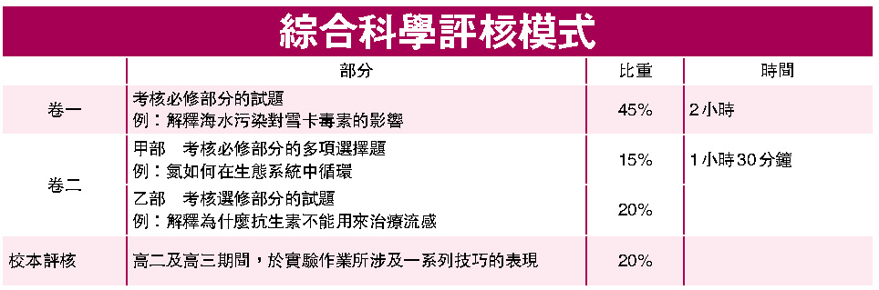 今年四月出版的香港中學文憑考試綜合科學模擬試卷中,對於污染問題就從生物學分析大腸桿菌,從化學分析污染物成分,從地理角度分析污染區分布。對學生知識儲備要求不高,但要求學生具有綜合的視野與分析事物的能力。