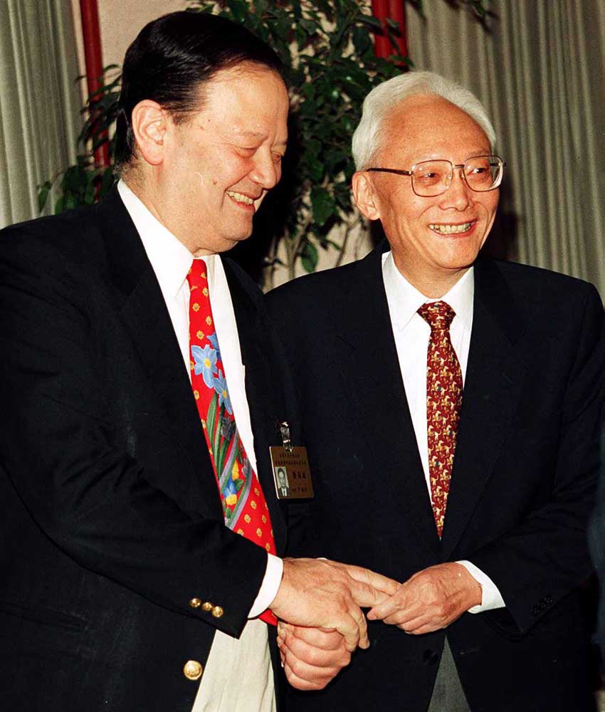 圖:羅德丞(左)出席特區籌委法律小組第一次會議時與魯平喜相逢(資料圖片)