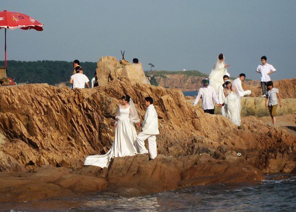 花石樓的旁邊是第二海水浴場,這裡水清沙白,是難得的天然海水浴場。新娘們很多都提着紗裙,在沙灘留下調皮的倩影。