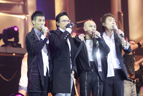 圖:梁漢文(左起)、蘇永康、張衛健、許志安首次以組合形式演唱