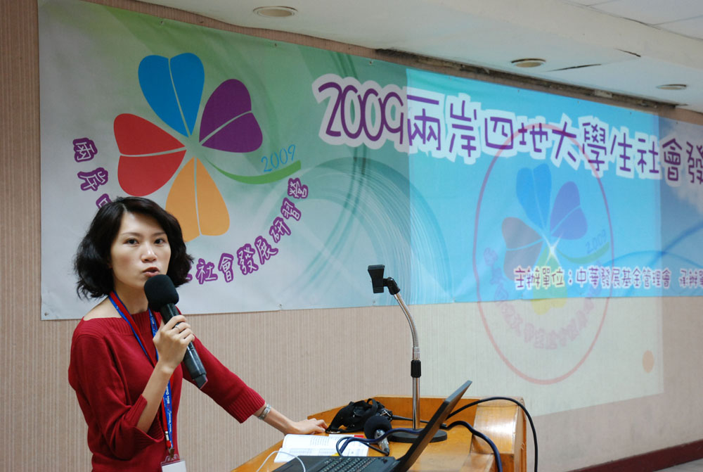 兩岸四地大學生研習營十七日在台北舉行,圖為中華青年交流協會副秘書長鄭婷文。(中央社)