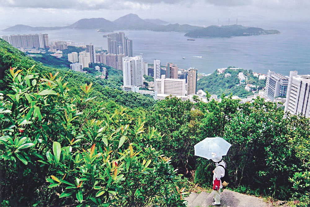 抵達頂峰後,可在休憩處稍作歇息,待體力恢復後再下山。沿途飽覽港島西的風光,縱然烈日當頭,汗濕衣衫,仍無損我們的興致。沿梯級一直下山會兩次經過分叉路口,按路標指示,先循克頓道方向前行,再轉入1號種植場。這種植場展示了一些常見的中草藥,有興趣的話或可在這兒多花一點時間。再往下行便是蒲飛路巴士總站,也是我們這次旅程的終點。
