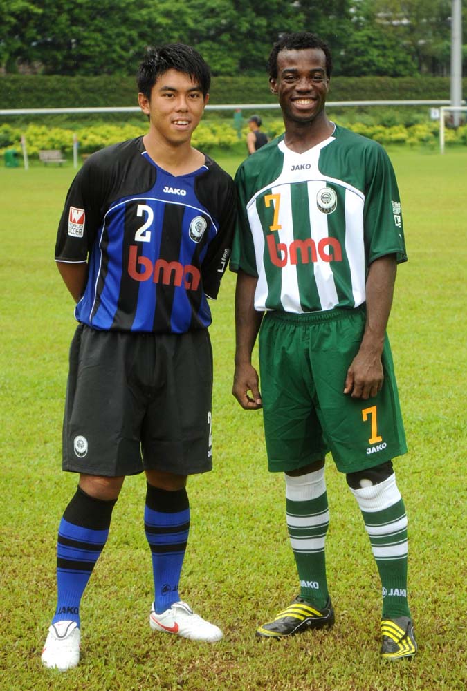 圖:法圖斯(右)與沈國強展示公民今季主、客場球衣(本報攝)