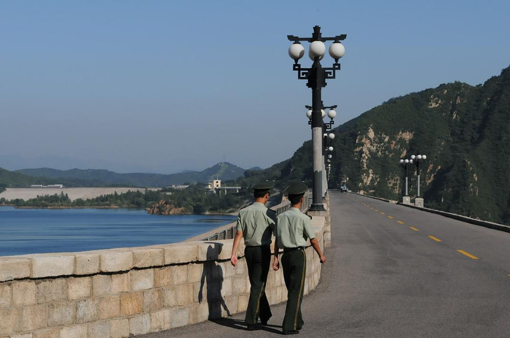 圖:武警在密雲水庫大壩上巡邏(本報記者張靜唯攝)