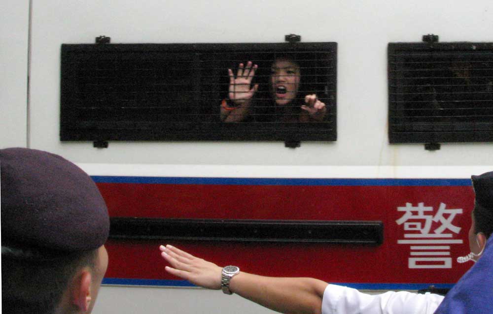 圖:陳巧文當日被送上警車情形(資料圖片)