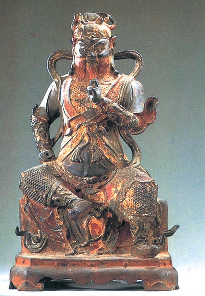 通常,收藏家較渴求明代及清初的銅鎏金佛像和菩薩像,既能升值,亦較容易保存,作為陳設更輝耀奪目,觀賞性高。素來甚少人會蒐藏明、清兩代的銅鑄坐像或立像,主因原因是保存完好而迄今仍品相上佳者極少;若非專業或富有心得,保管不易。例如附圖的關公坐像(高約六十七厘米),乃晚明時期用銅鑄造。本來工藝超卓,造型獨特,把《三國志》與《三國演義》的蜀國大將關羽(雲長)的魁偉英武、威風忠厚的形象展現,使人覺得關羽端的義氣干雲,堅貞不二;可說是那時鑄像代表作之一。
